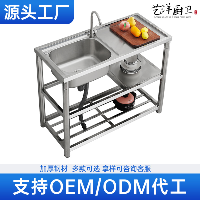 食器洗い槽シングルキッチン家庭用洗面器厚さスタンドステンレス簡易水槽双槽洗面器付きプール