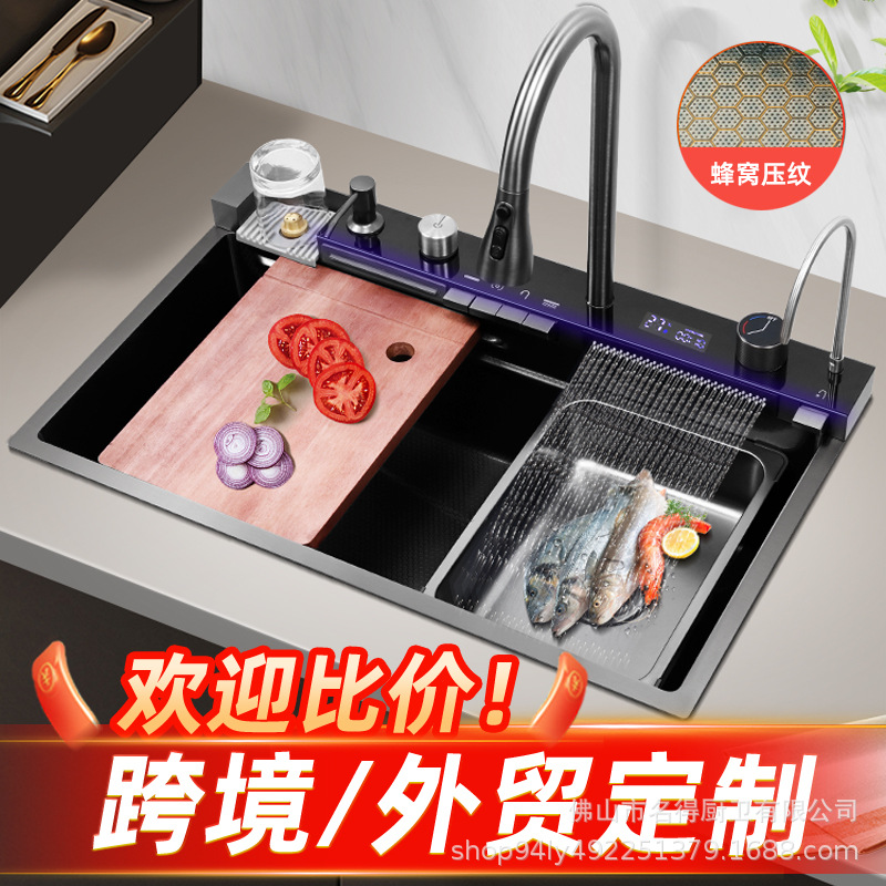 ナノキッチン水槽大単槽SUS304ステンレス銃グレー家庭用洗面器皿洗い槽台下盆