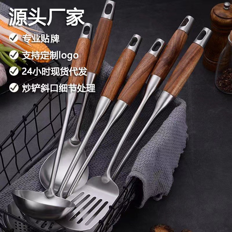 304ステンレススプーン鍋シャベル漏れスプーン台所用品花梨木柄厚い断熱料理人炒めスプーン
