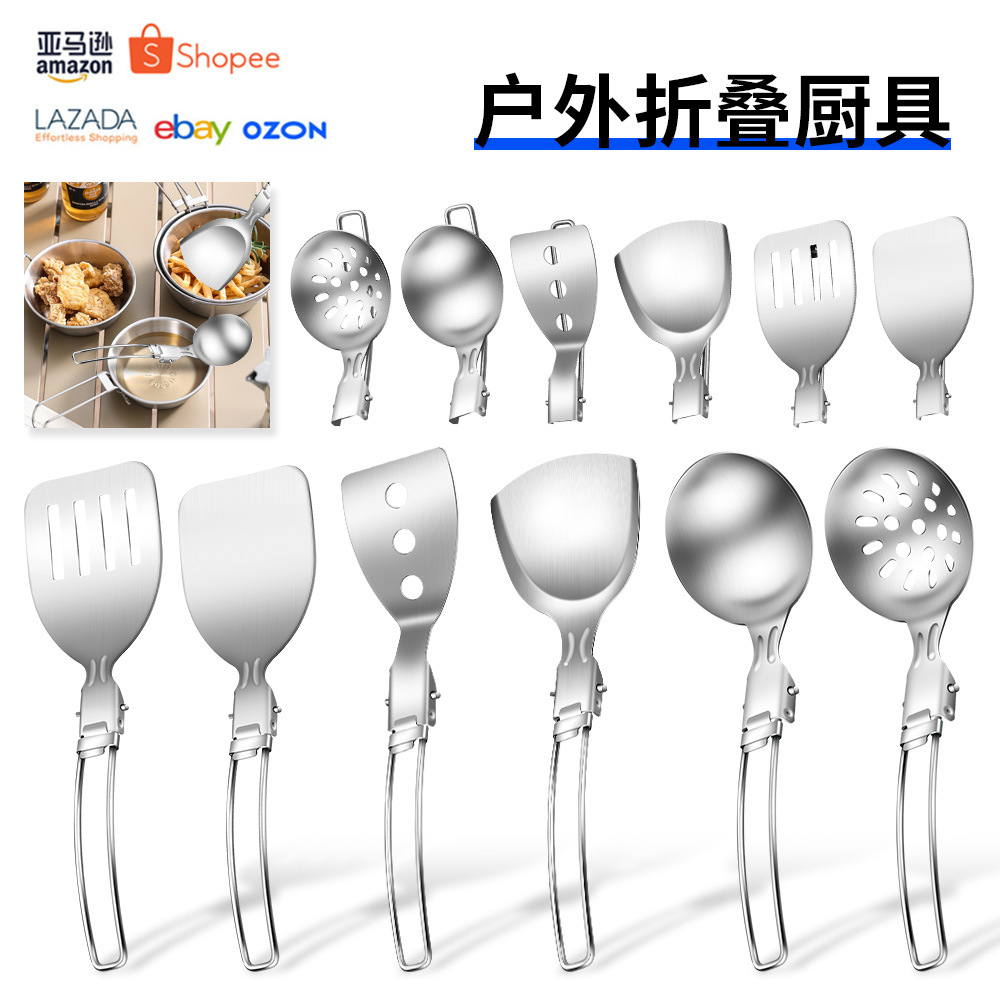 304ステンレス野外調理器具キャンプ携帯型折り畳みスプーン漏れスプーンフライパンシャベル屋外旅行セット