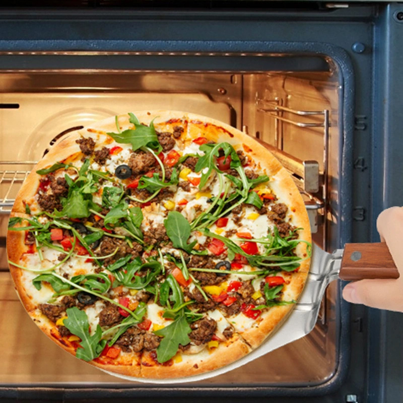 ステンレス製ピザスパチュラ 大型 ブナ材ハンドル 丸型鍋スパチュラ ケーキ移動スパチュラ キッチン用品 滑り止め 耐高温