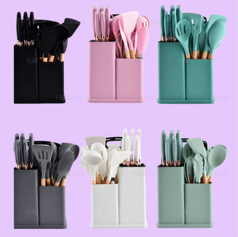 工場卸売りシリカゲル調理器具19点セット無粘着鍋刃物セット家庭用調理器具シャベル調理道具まな板