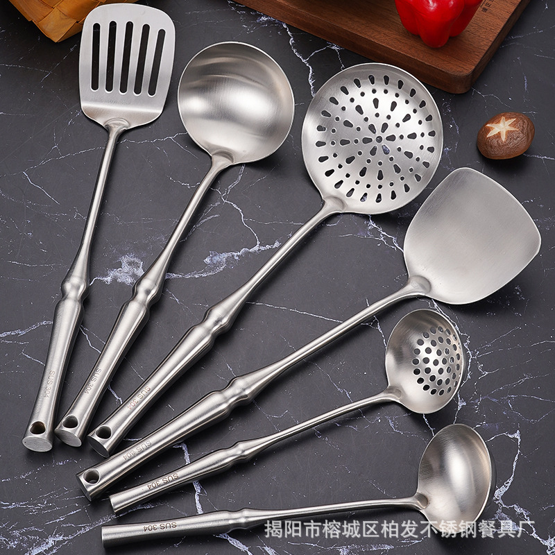 304ステンレス家庭用スプーン鍋シャベル漏れスプーン6点セットホテル料理スプーンシャベルマット糸引き技術調理器具