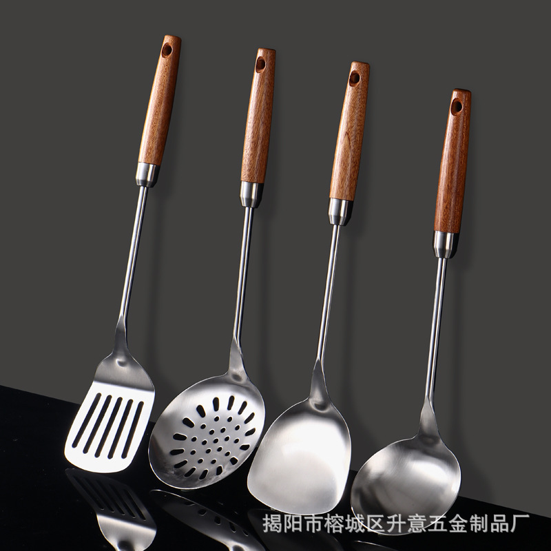 304ステンレス鍋シャベルシャビリー木柄調理器具セット調理シャベルスプーン漏れスプーンシャベル台所用品卸売り