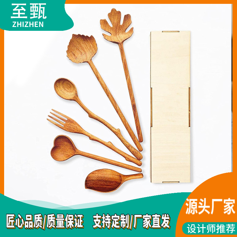 アカシア材料理サラダスプーン、ステーキソース用スパチュラ、クロスボーダー食器4点・5点セット