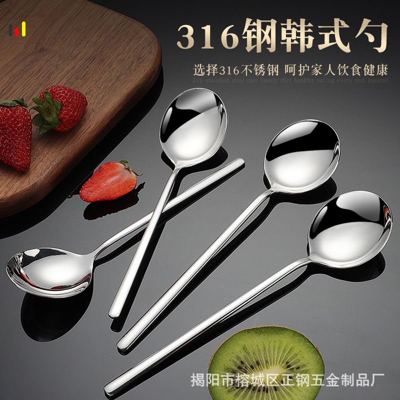 316ステンレスの韓国式の長い柄のスプーンは丸い頭を大きくして更にスープの主な食事を調整します。