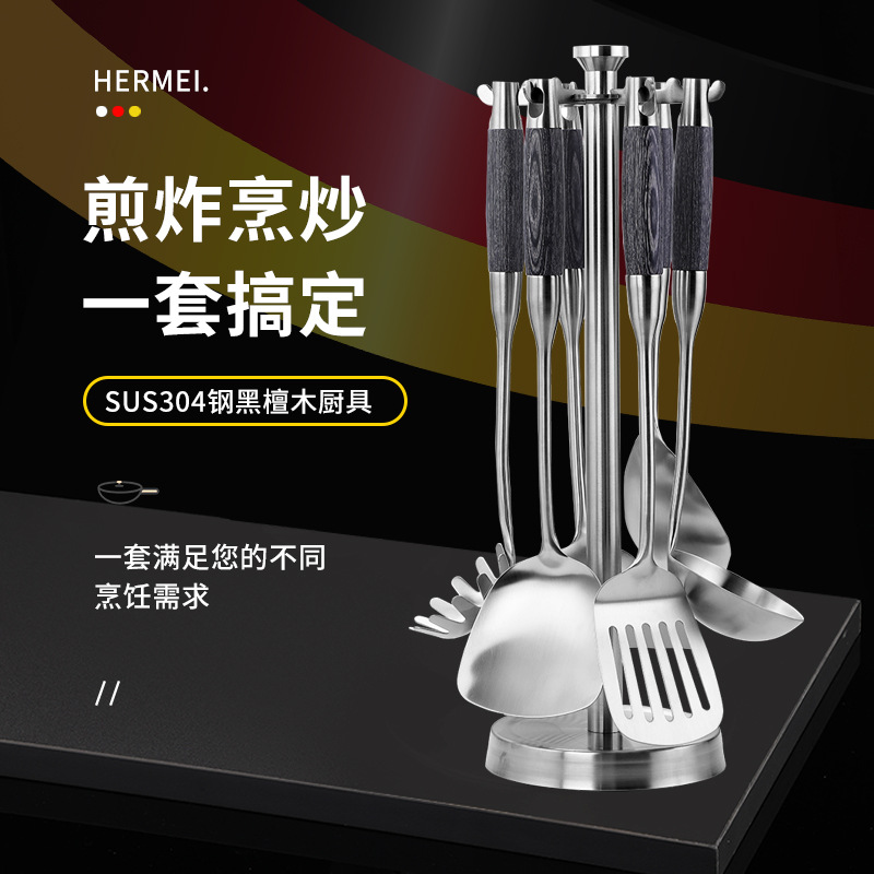 メーカー304ステンレス色木調理鍋シャベルセット厚いスプーンシャベルセット卸売り家庭用キッチンツール