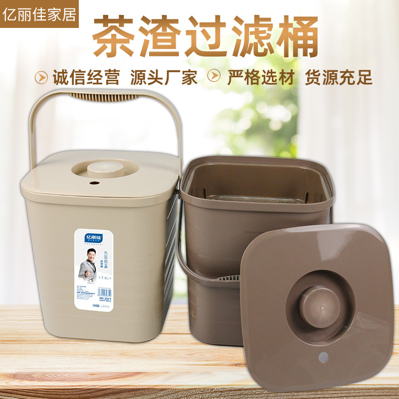 家庭用プラスチックハンドル茶滓桶ろ過茶葉蓋付き茶桶卸売り雑物桶ゴミ箱メーカー