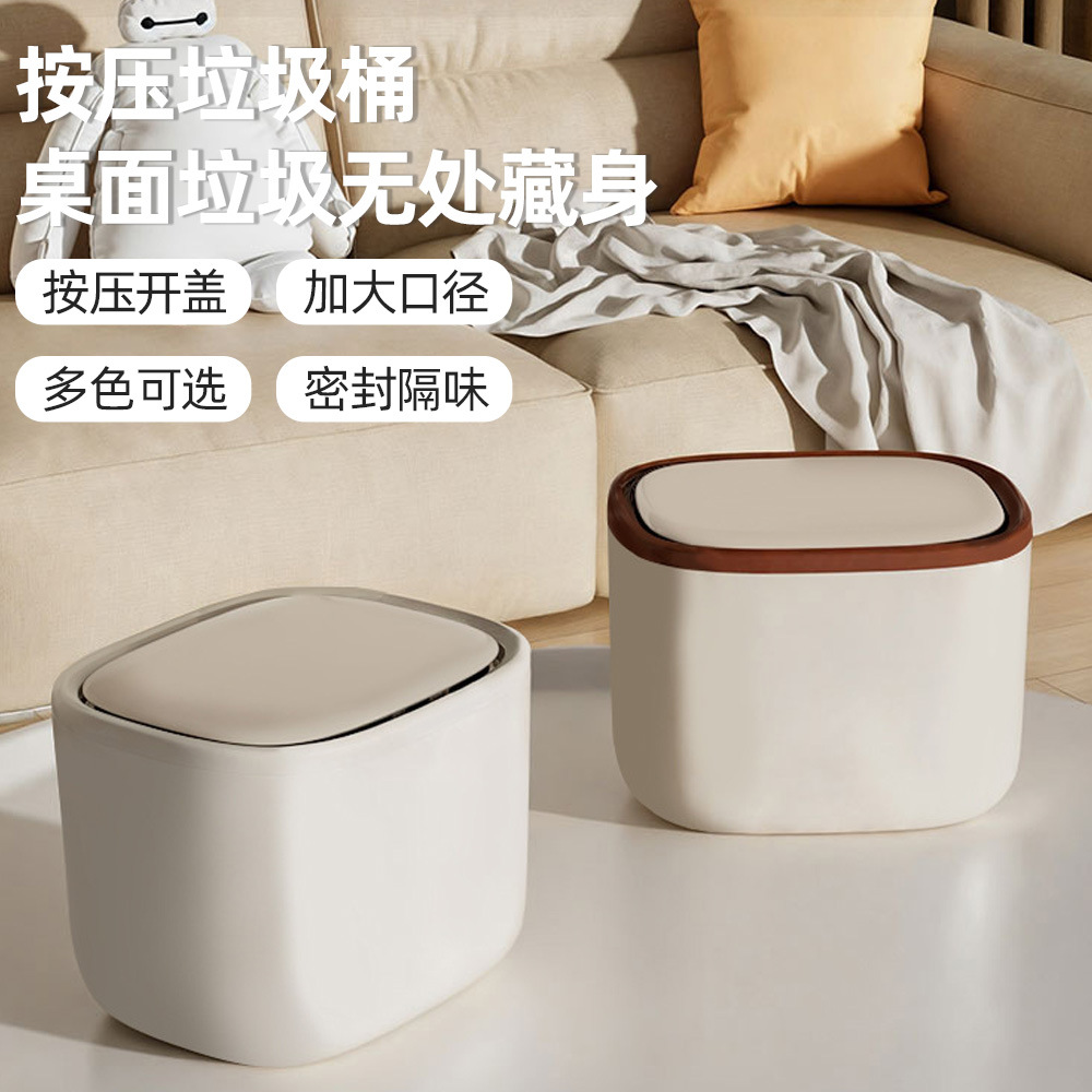 25年新しいデスクトップゴミ箱家庭用シンプルなプレスオープン蓋厚みのあるPP小型ゴミ箱収納バケツ