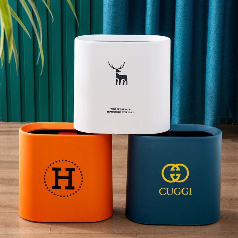 角型ゴミ箱家庭用リビングルームトイレキッチン寝室トイレオフィス北欧蓋なしシンプル圧力付きリング
