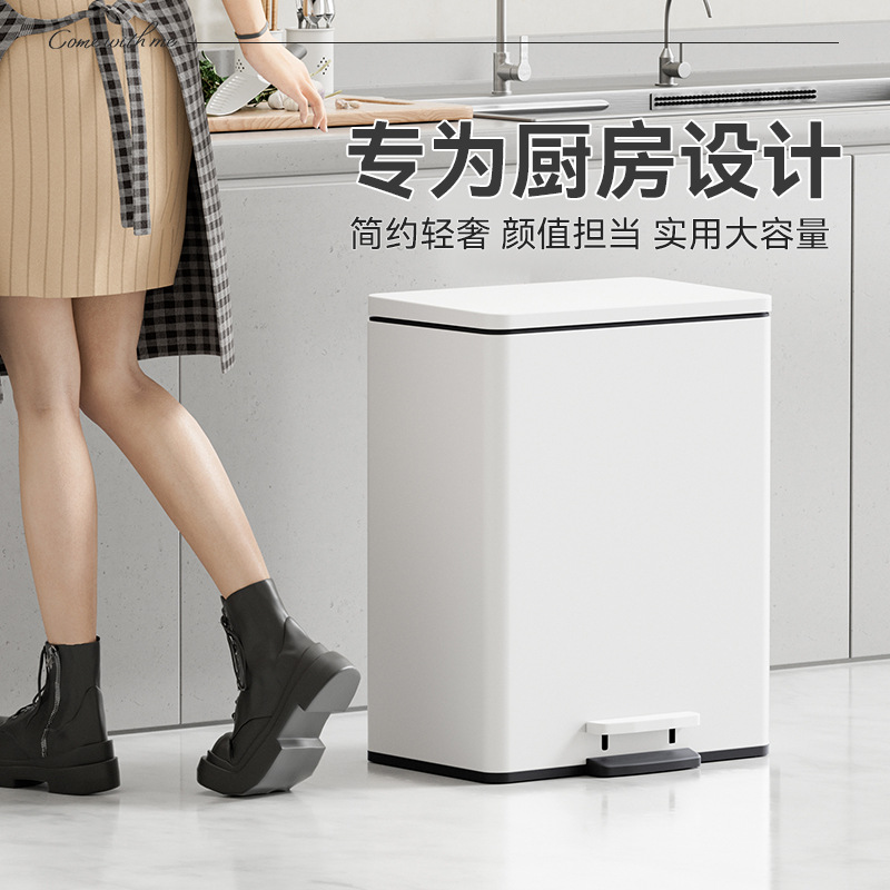 家庭用の白い足踏み角の薄い蓋付きゴミ箱蓋付きキッチントイレの紙かごの挟みが静かでゆっくりと収納桶に落ちます。