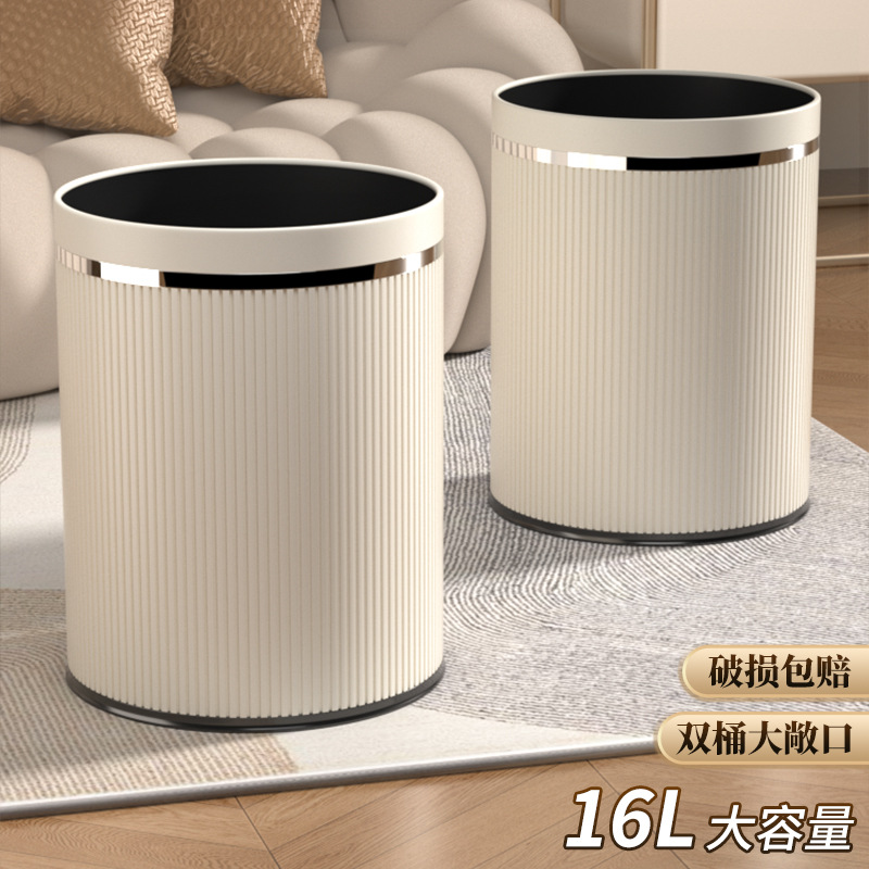 ゴミ箱家庭用高級感大サイズ無蓋リビングルームキッチン寝室衛生桶オフィス創意圧輪紙かご