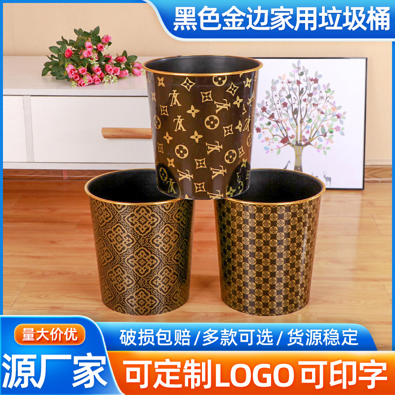 家庭用黒色金辺無圧圏プラスチックゴミ箱キッチントイレ紙かご桶客間収納桶卸売り
