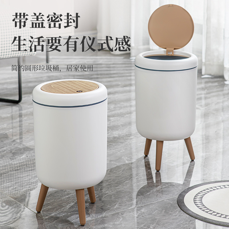 家庭用高級ゴミ箱 リビングルーム/バスルーム用 高さのある蓋付きプッシュ式収納バケツ 北欧風ライトラグジュアリー