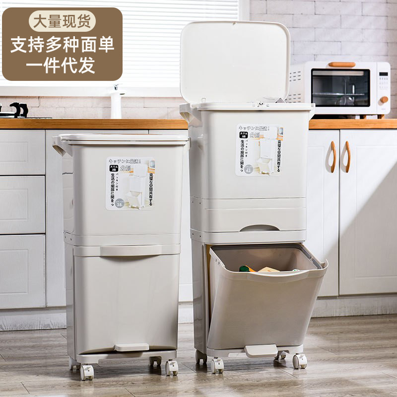 キッチンゴミ箱分類蓋付き大容量腰をかがめない収納桶厨房余乾湿分離移動ゴミ箱