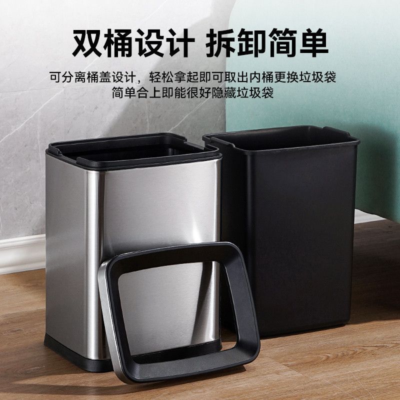 メーカー直販のフリップトップゴミ箱はアップグレードされたダブルオープンゴミ箱で、快適な内側のバケツを備え、毎日の使用にさらに便利です。