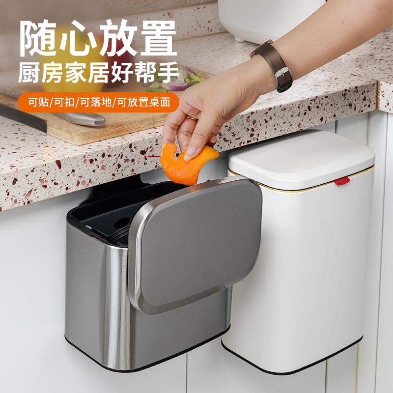 キッチン家庭用壁掛けスライド式蓋厨房余ゴミ箱トイレ穴なし吊り下げ可能オフィスデスクトップ収納桶