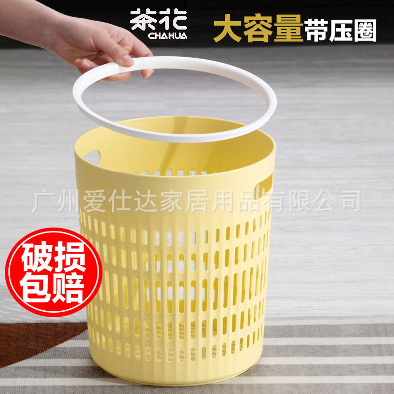 茶花ゴミ箱家庭用無蓋ゴミ捨て筒大容量高颜値キッチン円形衛生桶商用増厚