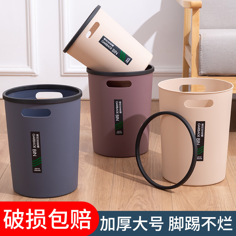 ゴミ箱プラスチック家庭用キッチンゴミ箱高颜値寝室トイレシンプルな大型蓋なし圧輪卸売り