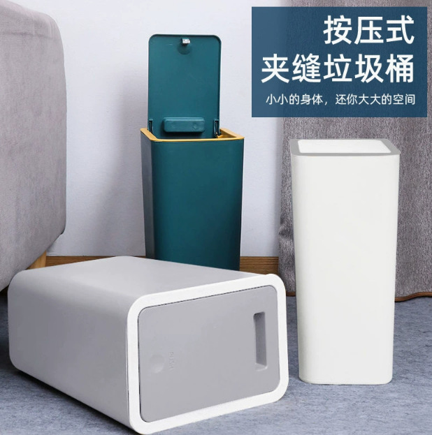 隙間用ゴミ箱 家庭用 トイレ リビング キッチン 大容量 自吸式袋詰め プッシュ式蓋付きペーパーバスケット