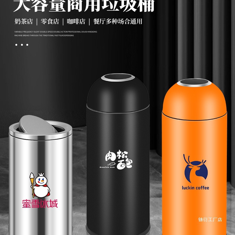 弾丸ゴミ箱大型商用大容量ステンレス円形創意カフェミルクティー店収納桶なし