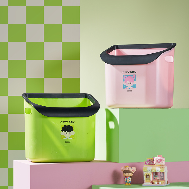 男の子の女の子がゴミ箱を壁にかけることができます。キッチンキャビネットのドアをかけることができます。