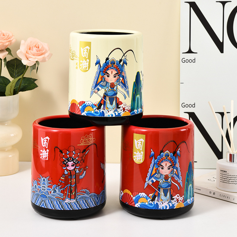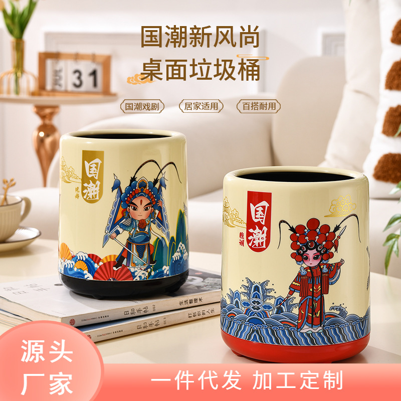 辛新型デスクトップ国風ゴミ箱花旦プリント国潮プレゼント収納桶生活貯蔵桶家庭用卸売り