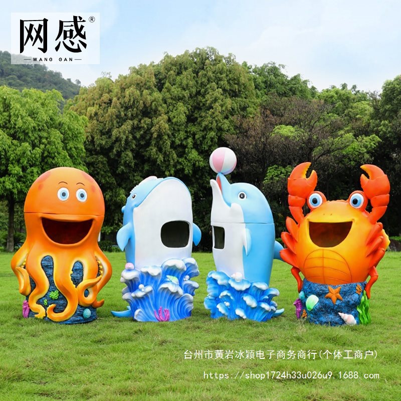 グラスファイバー漫画海洋彫刻屋外公園林芝生風景装飾大型ゴミ箱装飾品