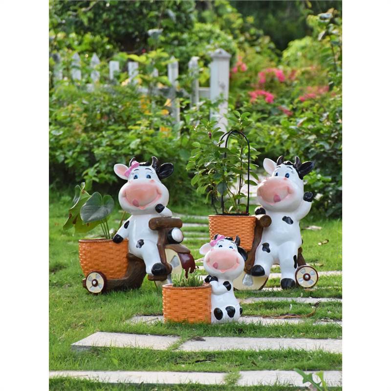 屋外の動物の植木鉢の漫画の乳牛の花のかめの花園の庭の幼稚園は庭園の景観のガラス鋼の彫刻を飾ります。