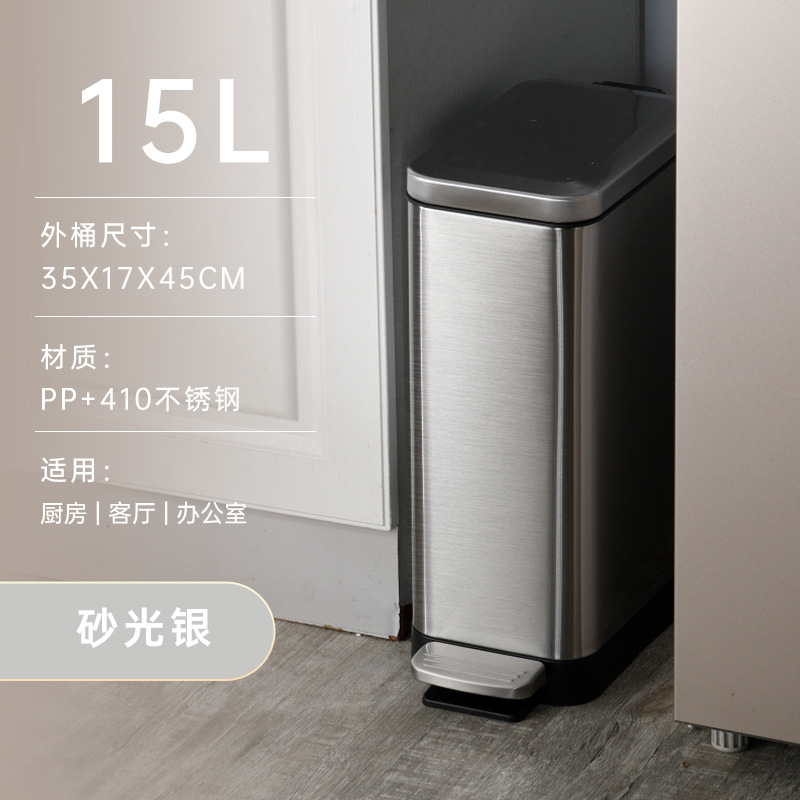 15L 長方形ステンレス鋼の隙間ゴミ箱モダンなシンプルなペダルサイレントリビングルームキッチンオフィス紙バスケット
