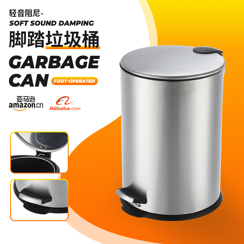 メーカー卸売ステンレス製ゴミ箱足踏みリビング家庭用バケツ円形収納バケツ寝室キッチンゴミ箱