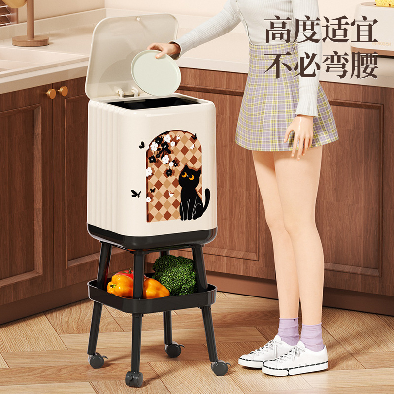 腰をかがめないで高い足の台所のゴミ箱の高い顔の値は圧力式の家庭用ゴミ箱の大容量のプーリーを押して移動します。