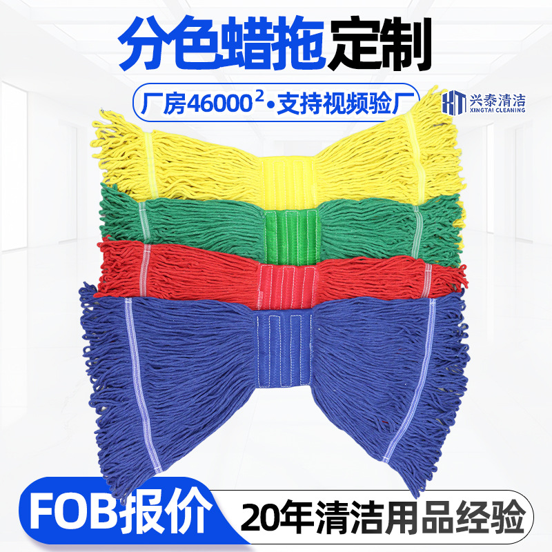 工場カスタム四色綿糸ワックスモップヘッド、幅広メッシュ布交換ヘッド、取り外し可能な水拭きモップ、病院・不動産用モップ、OEM
