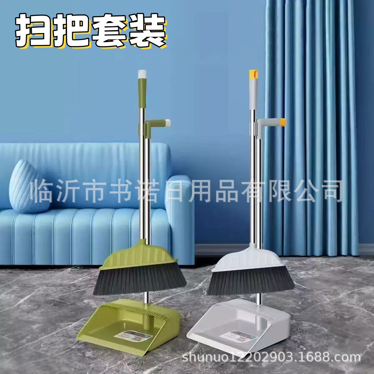 ほうきとちりとりのセット 家庭用掃除用具セット 太い柄で自立式回転ほうき 工場卸売 跨境販売