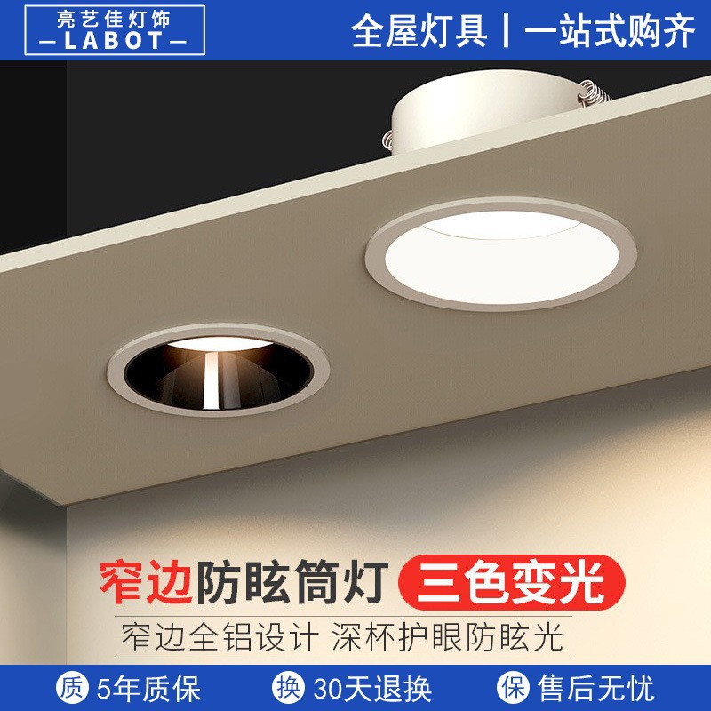 狭いエッジ深いアンチグレアダウンライトled三色変光家庭用埋め込み式スポットライト4000k无主灯リビング照明