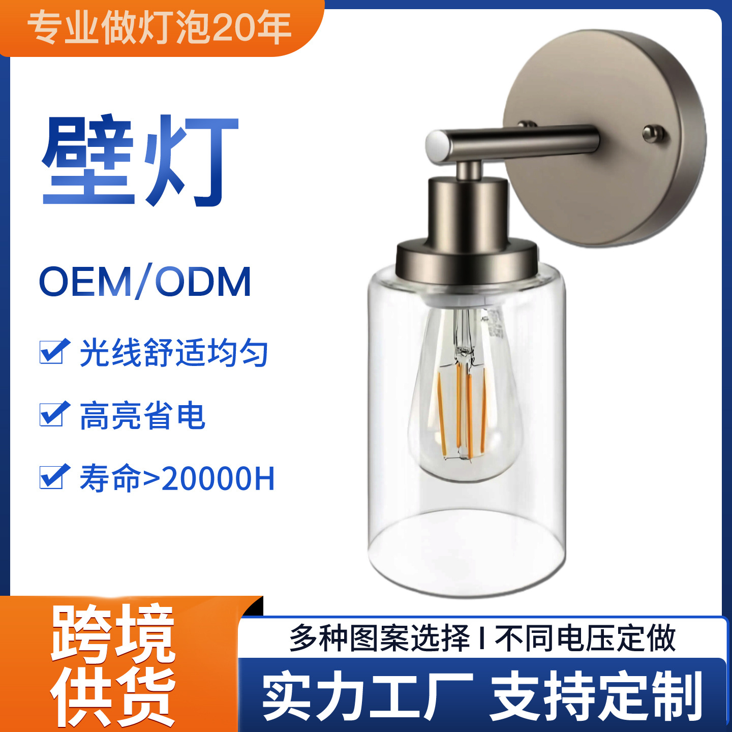 国境を越えた壁灯アメリカのレトロ工業風鉄芸寝室のベッドの上の通路のソファーの背景灯ガラスの壁灯
