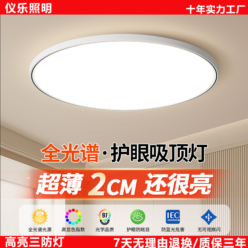 シーリングランプフルスペクトル超薄型目の保護ランプハイエンドの寝室の書斎リビングルームランプ三耐性シーリングランプ中山ランプ