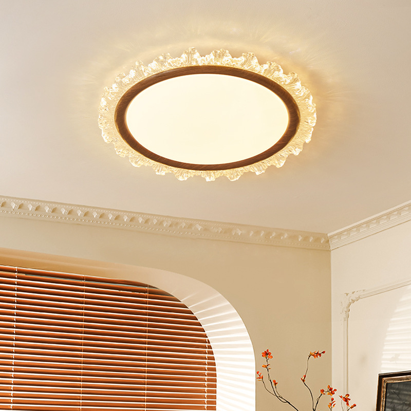 ミッドセンチュリーリビングルームランプシーリングランプフルスペクトル目の保護超薄型マスターベッドルームランプレトロウォールナット木目調メインランプ8116