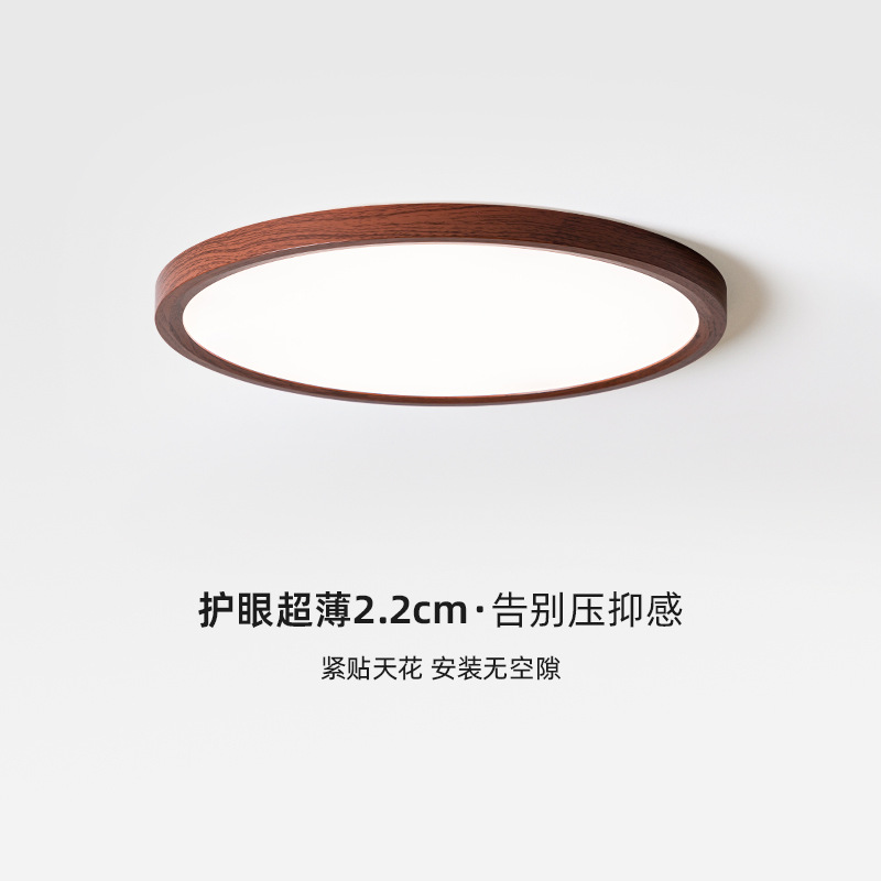 中古風全スペクトル保護眼超薄型寝室天井灯胡桃木目シンプルレストラン書斎フード間照明