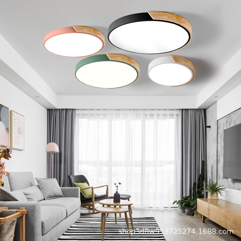 北欧円形LED寝室ランプ現代シンプルリビングルーム子供部屋中山照明器具マカロン超薄天井ランプ