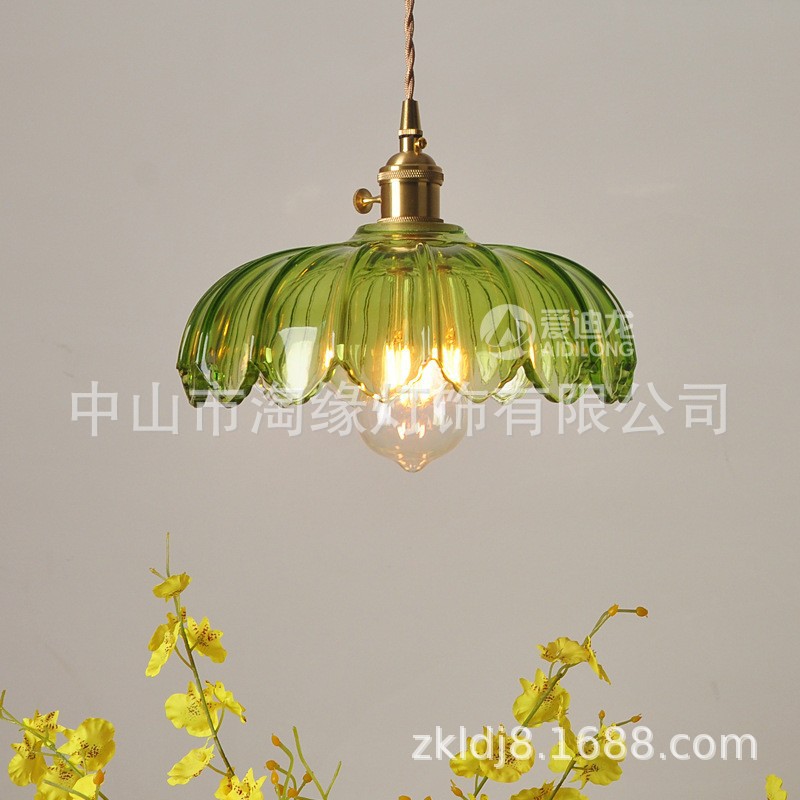卸売り復古老上海民国レトロ田園灯具レストランカフェ真鍮ガラス小シャンデリア緑羅