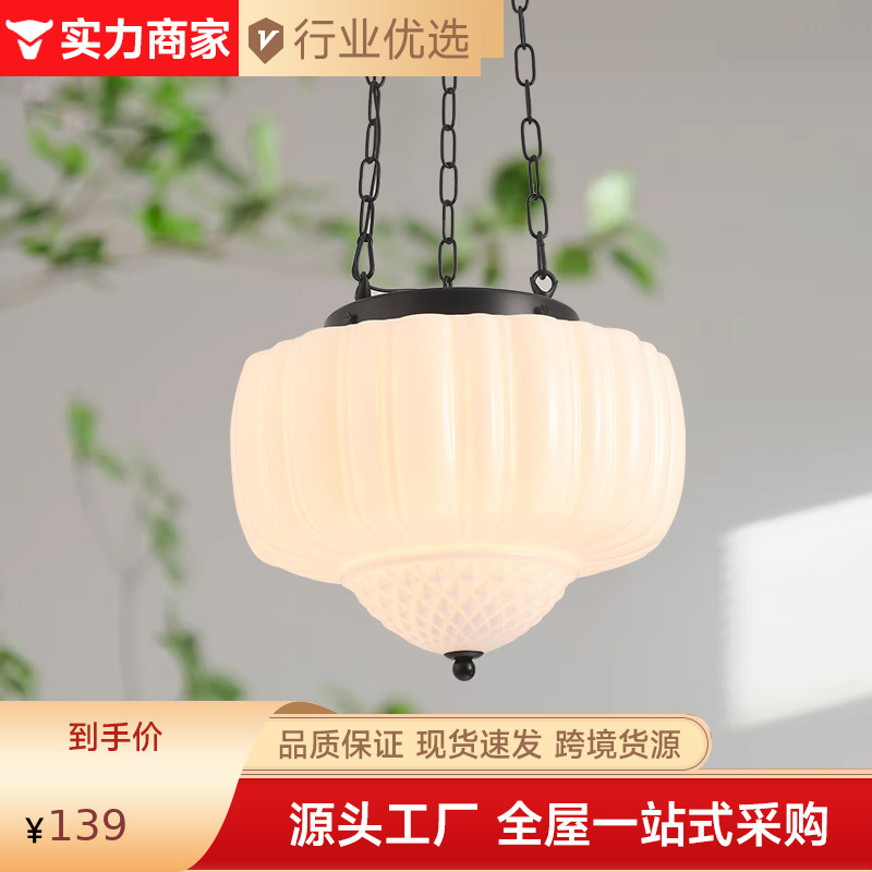 中山照明器具ガラスクリーム風寝室天井灯フレンチレトロ古い上海書斎レストラン入戸シャンデリア
