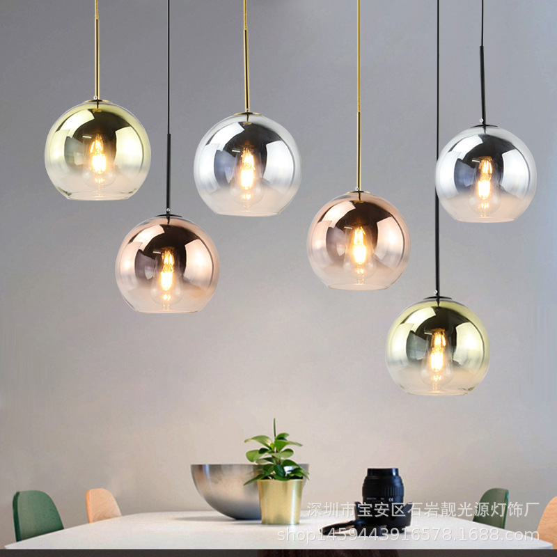 リビングルームのモダンなシンプルな寝室のベッドの銅のヘッドライトの丸いボールのグラデーションのガラスのバーのレストランの多彩なシャンデリアの工場価格は直接販売します。