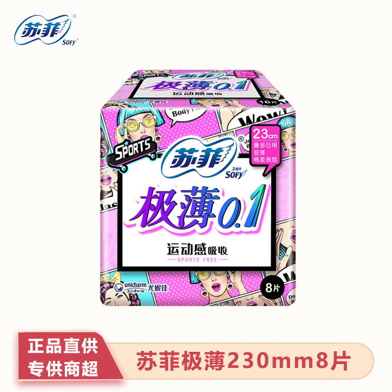 極薄0.1日用生理用ナプキン綿柔表層230mm * 8枚運動感叔母超卸売り箱