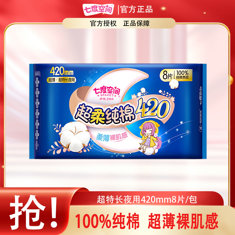 七度空間生理用ナプキン少女純綿叔母タオル超薄長夜用420セット全箱卸売り女