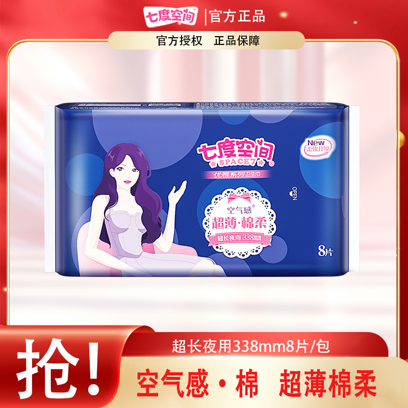 七度空間生理用ナプキン旗艦店の正規品夜用通気性フルケース卸売り超薄綿柔らかい空気感叔母タオル