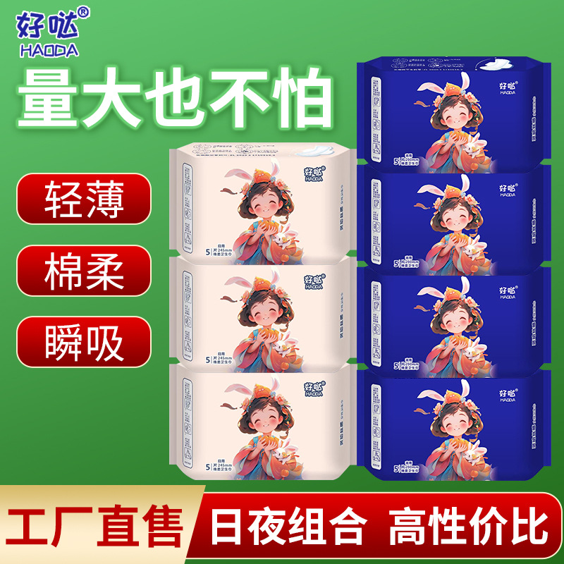 高洁糸生理用ナプキン全箱卸売り日用240mm超長夜用420mm叔母タオル夜安ズボンマット