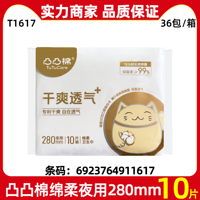 凸綿生理用ナプキン全箱卸売り夜用280mm柔らかい綿の表層10枚の通気性の薄い少女叔母タオル