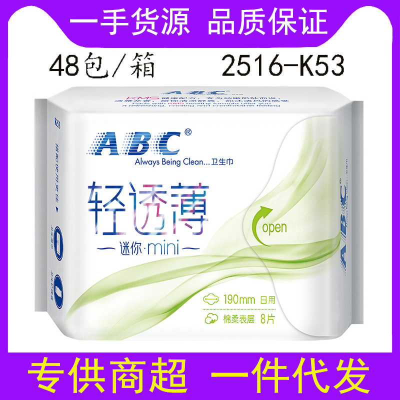 Abc日用生理用ナプキンミニ綿柔表層保護パッド延長超薄型防漏夜用叔母タオル全箱卸売り