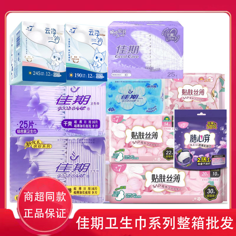 Jiaqi 生理用ナプキン カラフルなライトフェザーシリーズ + 7 シリーズ昼夜女の子全箱卸売本物の組み合わせパックおばさんナプキン